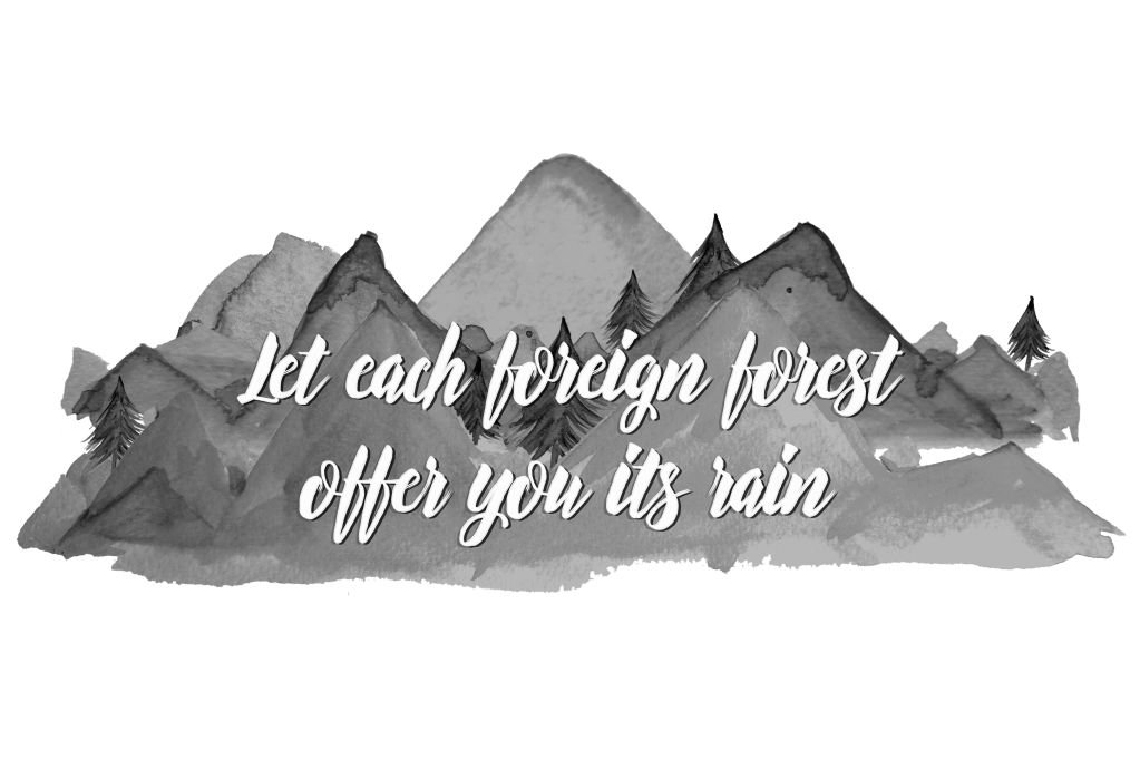 - Quote from the song “Move Toward the Darkness” from the Addams Family Musical. A perfect keepsake for musical theatre and drama club directors and staff! Perfect for cast gifts! This design makes a great present for all theater nerds! Design features a watercolor scene depicting a mountain range covered in trees. Over the illustration are the words “let each foreign forest offer you its rain” in a white cursive font.