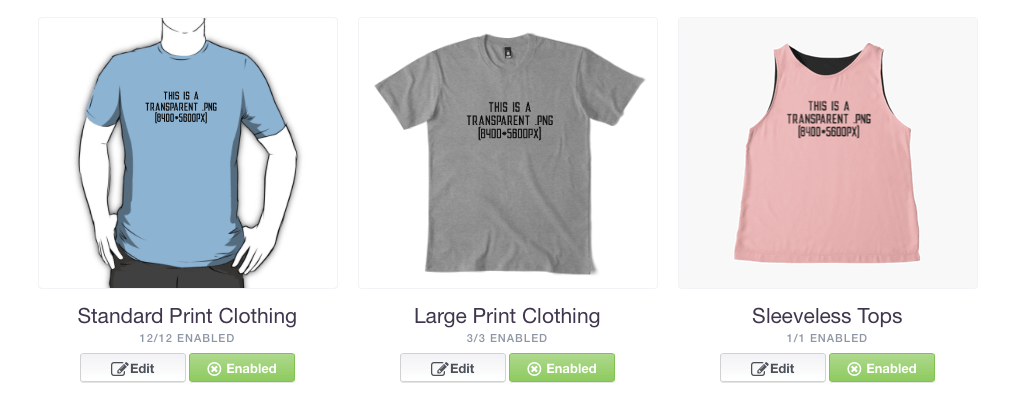 - Once again, however, you want to cast the widest net you can. Generally, strive to keep as many products enabled for each design as possible!
